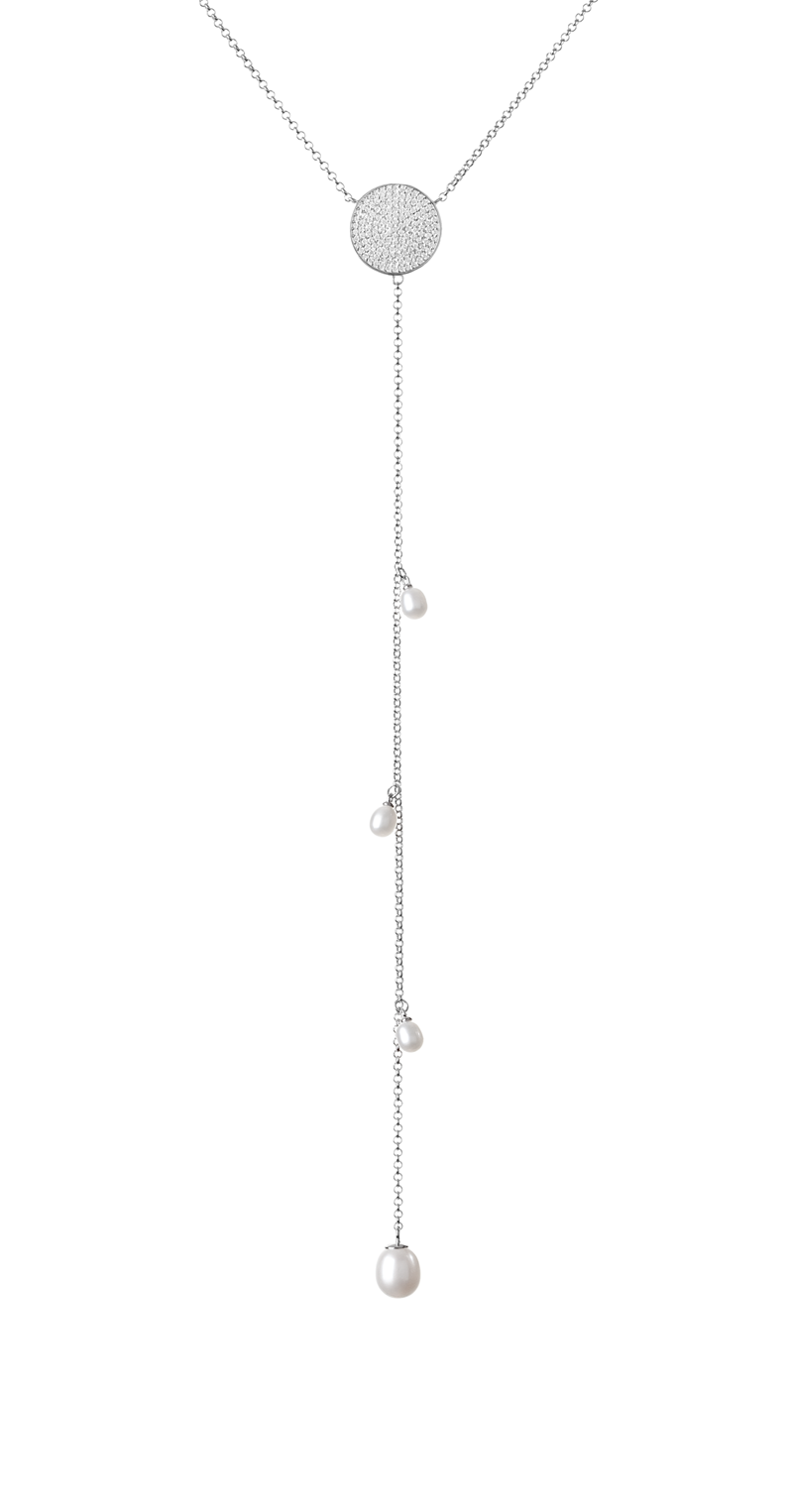 Sidabrinė grandinėlė su perlais ir cirkoniais