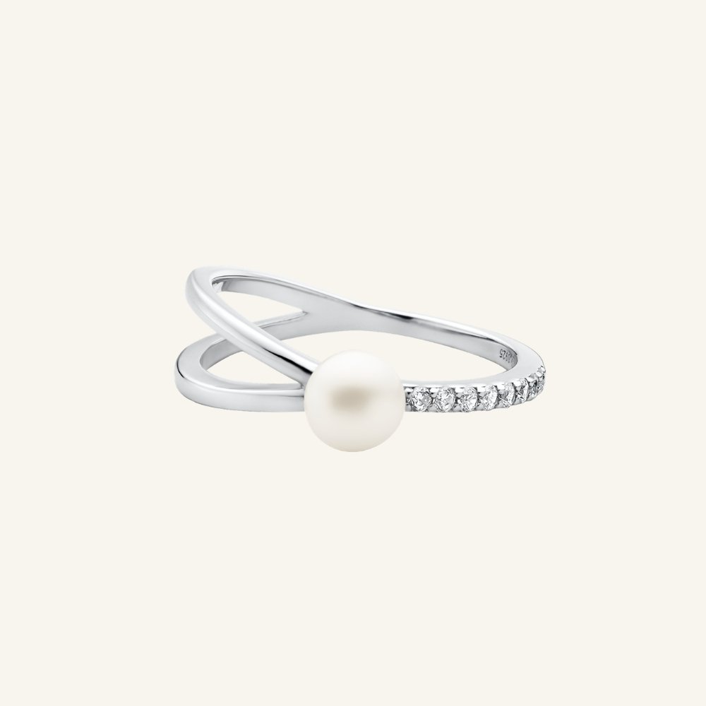 Sidabrinis žiedas su perlu ir cirkoniais