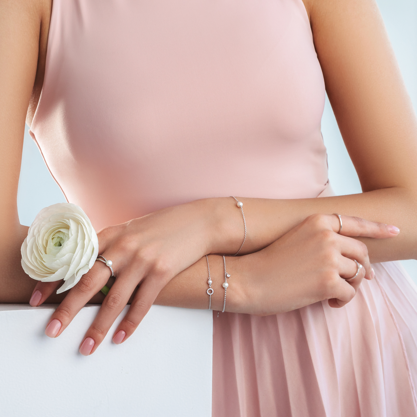 Perlų žiedas su sidabru
