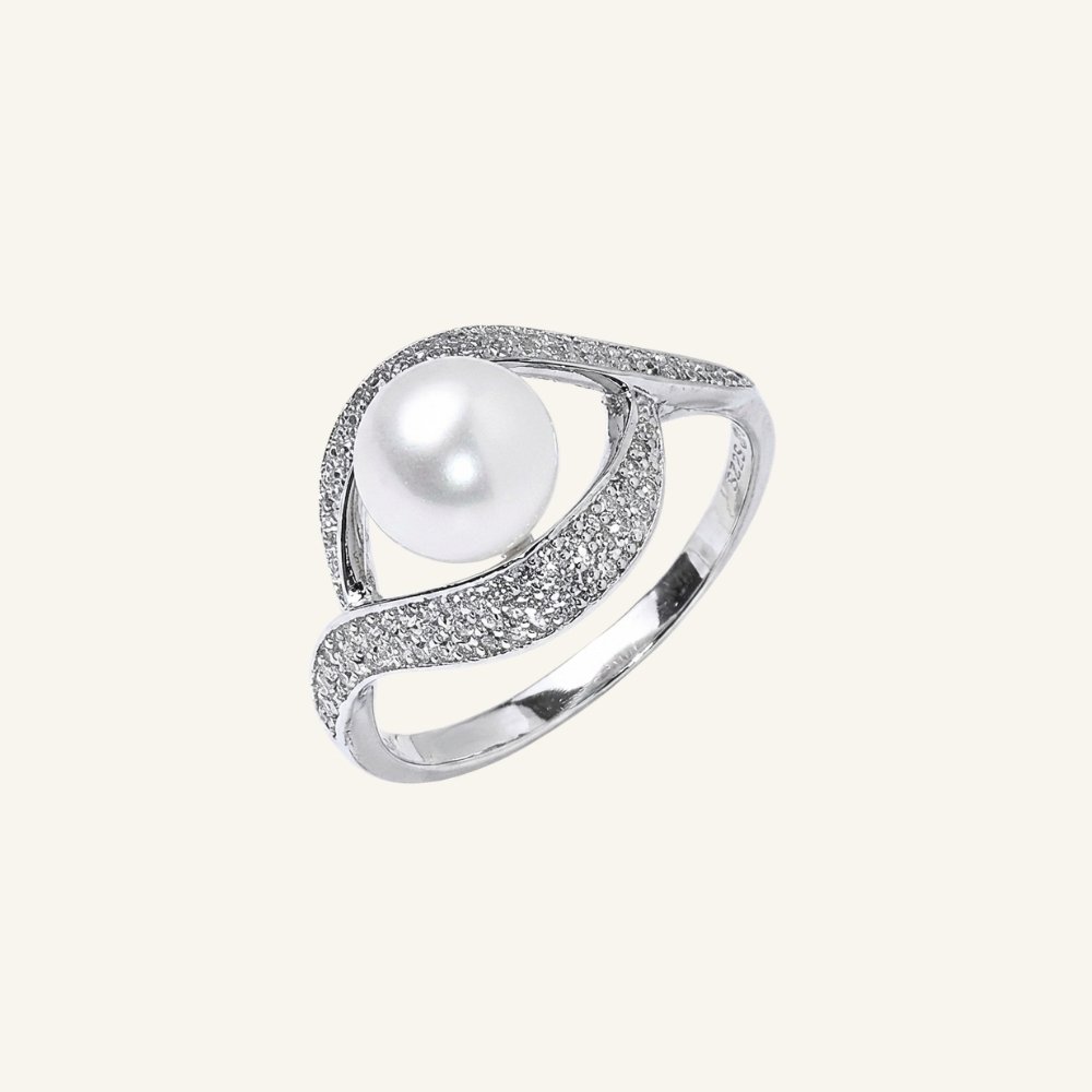 Sidabrinis žiedas su perlu ir cirkoniais